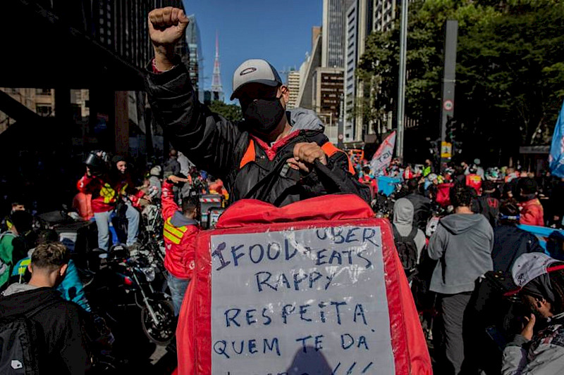 Entregadores fazem protesto por aumento no valor pago por aplicativos